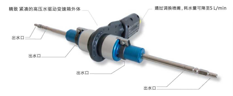 太科水動(dòng)力光伏組件清洗設(shè)備,由德國(guó)科林德(Cleantecs GmbH)公司聯(lián)合諾邁新能源科技(北京)有限公司共同推出的太陽(yáng)能光伏電站光伏組件專業(yè)清洗設(shè)備,該系統(tǒng)專門針對(duì)地面光伏電站和分布式光伏電站太陽(yáng)能光伏組件的專業(yè)清洗定制生產(chǎn)。該系統(tǒng)純機(jī)械原理設(shè)計(jì),刷體內(nèi)部沒有電機(jī),由高壓清洗機(jī)針孔噴頭驅(qū)動(dòng)行星齒輪箱減速機(jī)系統(tǒng),系統(tǒng)帶動(dòng)兩端傳動(dòng)軸邊旋轉(zhuǎn),邊從軸兩側(cè)的多個(gè)固定噴孔噴出高壓水流,軸上套清洗滾筒刷高速旋轉(zhuǎn),邊旋轉(zhuǎn),邊清洗。該設(shè)計(jì)有別于電動(dòng)滾刷,只在滾刷的頂部設(shè)置外接噴孔,通過(guò)將水噴灑在刷毛上邊旋轉(zhuǎn)邊清洗,可以高效的提升清洗的效率。同時(shí)針孔設(shè)計(jì)更省水,刷子內(nèi)少金屬件的設(shè)計(jì),可以減少滾刷高速旋轉(zhuǎn)時(shí)時(shí)產(chǎn)生的震蕩對(duì)光伏板帶來(lái)的隱裂,有效提升光伏組件壽命。